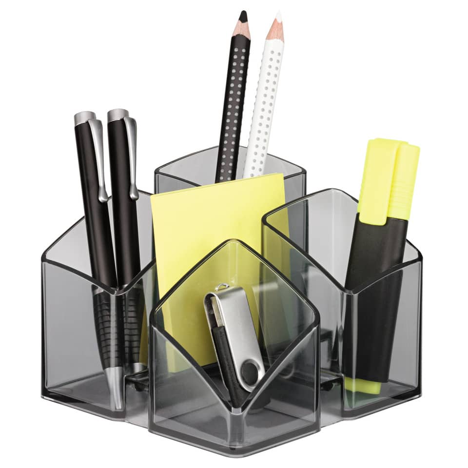 Eigenschaften "Schreibtischköcher SCALA, mit 4 Fächern und Kartenständer, transparent-grau HAN 17450-24"
