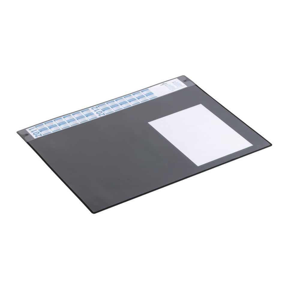 Schreibunterlage. Ausführung: PVC. Rutschfest, dreisprachig: Deutsch, Englisch, Französisch, mit Angabe der gesetzlichen Feiertage, Langfristig aktuell: mit schmalem Jahreskalender für 4 Jahre. Größe (B x H): 650 x 520 mm. Stärke: 0,8 mm. Farbe: schwarz.