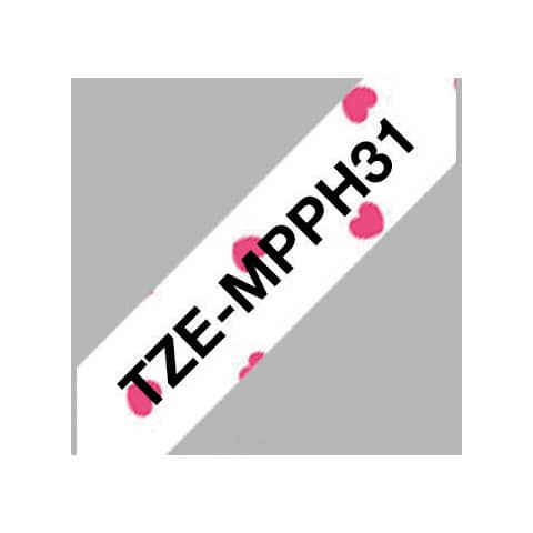 Das Original Brother TZe-MPPH31 Schriftband mit schwarzer Schrift auf rosa Herzen ist perfekt lesbar und eignet sich aufgrund seines schönen Musters optimal für Selbstgebasteltes, Karten und Geschenke. Dank der laminierten Oberfläche ist das Schriftband wisch-, wetter- und kratzfest und hält selbst extremen Bedingungen hinsichtlich Abrieb, Temperaturen, Chemikalien und UV-Licht stand.