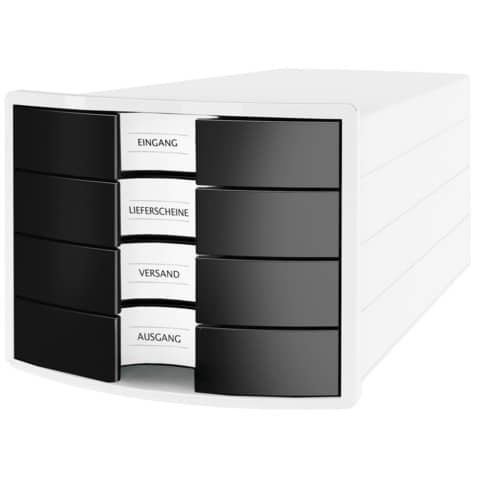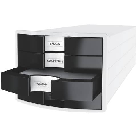 Produktinformationen "Schubladenbox IMPULS, DIN A4/C4, 4 geschlossene Schubladen, weiß/schwarz HAN 1012-32"