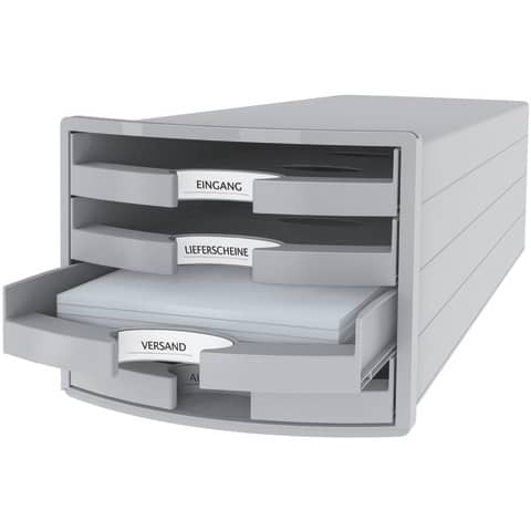 Produktinformationen "Schubladenbox IMPULS, DIN A4/C4, 4 offene Schubladen, lichtgrau HAN 1013-11"