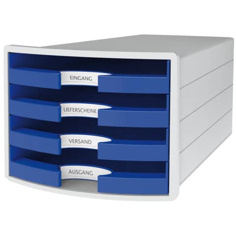 Eigenschaften "Schubladenbox IMPULS, DIN A4/C4, 4 offene Schubladen, lichtgrau/blau HAN 1013-14"