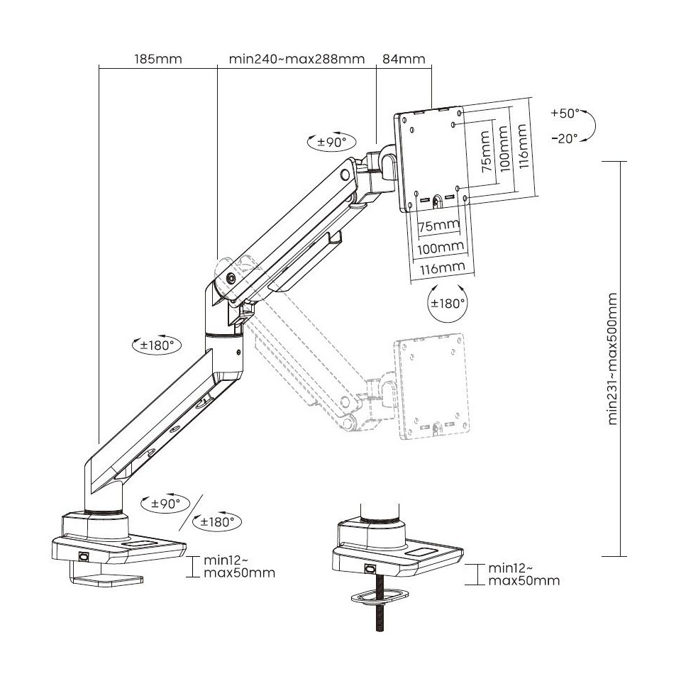Die Equip 650181 17"-49" Heavy-Duty Monitor Desk Mount Bracket ist eine robuste und vielseitige Lösung, die entwickelt wurde, um größere Monitore mit einer Größe von 17 Zoll bis 49 Zoll zu unterstützen. Diese Schwerlasthalterung eignet sich ideal für Benutzer, die eine langlebige und zuverlässige Lösung für die Verwaltung größerer Displays in ihrem Arbeitsbereich benötigen.Mit einer stabilen Konstruktion gewährleistet die Schwerlast-Schreibtischhalterung Stabilität und sichere Unterstützung für Monitore mit unterschiedlichen Gewichten. Das einstellbare Design ermöglicht eine vielseitige Positionierung und erfüllt die Anforderungen von Fachleuten, kreativen Designern und Gamern gleichermaßen. Egal, ob Sie an komplexen Aufgaben arbeiten, Videos bearbeiten oder spielen, diese Halterung bietet Flexibilität beim Anordnen und Ausrichten Ihrer größeren Monitore.