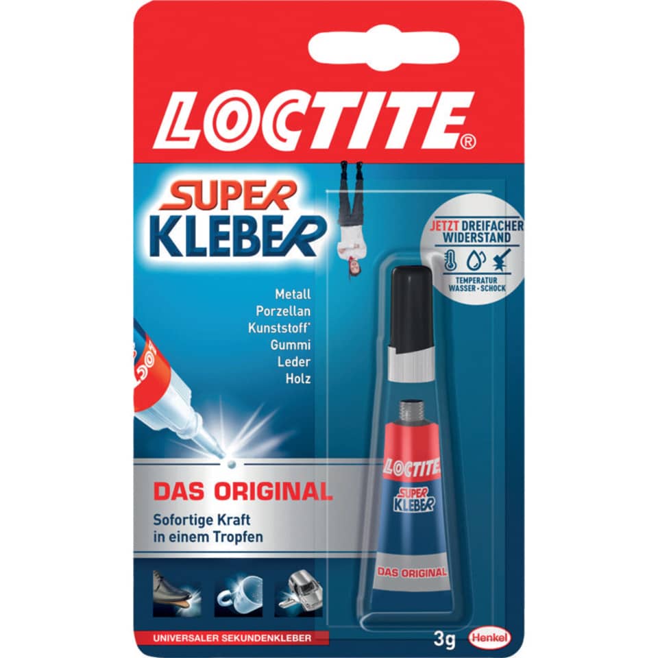 Sekundenkleber (Büro, Basteln) Loctite® Superkleber Universal, ohne Lösungsmittel, Wasser- und spülmaschinenfest,Superstark und sekundenschnell , Transparent für unsichtbares Kleben, Lösemittelfrei ,Pin-Verschluss gegen Verkleben der Spitze,, Produktverwendung: Leder, Gummi, Holz, Metall, Porzellan, Papier u, Kunststoff, Kategorie der Anfangshaftung: extrem hoch, Typbezeichnung des Spezialverschlusses: Pin-Verschluss gegen Verkleben der Spitze, Behälterart/-inhalt: Tube, auf Blisterkarte mit 3 g