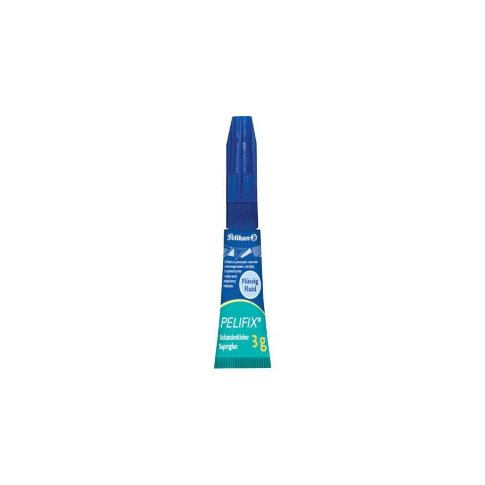 PELIFIX® Sekundenkleber P897. Flüssiges Fluid, fließt auch in die kleinsten Lücken. Produktverwendung: für Keramik, Porzellan, Gummi, Stein, Leder, Holz, Metall, Glas und viele Kunststoffe. Kategorie der Anfangshaftung: extrem hoch. Behälterart/-inhalt: Tube mit 3 g.