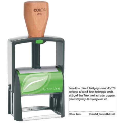 Selbstfärbestempel 2600 Greenline mit Gutschein zur Anfertigung einer kostenlosen Textplatte max. 8-zeiliger Text,
