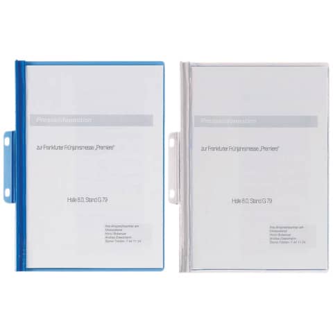 | Besonderheiten: | die eingelegten Unterlagen werden mit einem handelsüblichen Heftgerät an vier markierten Stellen geklammert. Der geklammerte Rand wird mit dem einklappbaren Klebestreifen verdeckt, für bis zu 30 Blatt |