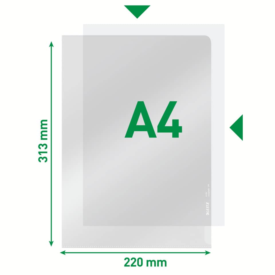 Leitz Sichthülle Premium, A4, oben und rechte Seite offen, dokumentenecht, mit Greifausschnitt, mit besonders stabiler Kantenschweißnaht, steif. Material: PVC-Hartfolie 0,15 mm. Format: 220 x 315 mm. Farbe: rot.