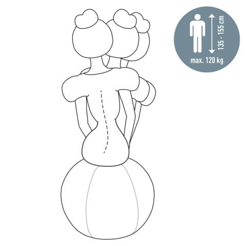 Leitz Sitzball Active Anti-Roll-Funktion. Stilvoller und ergonomisch gestalteter Gymnastikball, der sich ideal als zusätzliche Sitzgelegenheit eignet und den Körper tagsüber in Bewegung hält. Unterstützt die Muskelbewegung, um die Körperhaltung und die Flexibilität zu verbessern. Hilft dabei, Rückenschmerzen zu lindern. Wechseln Sie alle 30 Minuten zwischen Ball und Stuhl und achten Sie auf eine korrekte Luftbefüllung gemäß der Anleitung. Getestet und empfohlen vom deutschen IGR, dem Institut für Gesundheit und Ergonomie, nach DIN 26800 EN ISO 15537. TÜV-zertifizierte Anti-Wegroll-Sicherheitsfunktion, die verhindert, dass sich der Ball beim Aufstehen bewegt und zudem eine sichere Aufbewahrung ermöglicht. Mit einem stabilen und belastbaren Tragegriff, der den Transport von Raum zu Raum erleichtert. Robuster phthalatfreier Innenball mit einem großzügigen Durchmesser von 55 cm, geeignet für Körpergrößen zwischen 135 und 155 cm und einer maximalen Belastung von 120 kg. Schnelle und einfache Inbetriebnahme durch Aufpumpen des Innenballs mit der mitgelieferten Handpumpe und Einstecken des Stopfens. Der Stoffüberzug kann entfernt werden und ist von Hand waschbar. Im Lieferumfang enthalten sind der Innenball, der Stoffüberzug, die Handluftpumpe und 2 Verschlussstopfen, ein Stopfenentferner und die Gebrauchsanweisung. Plastikfreie Verpackung. Material: PVC, phtalatfrei. Format: Ø 55 cm. Gewicht: 2,4 kg. Farbe: hellgrau. Schnelle und einfache Inbetriebnahme durch Aufpumpen des Innenballs mit der mitgelieferten Handpumpe und Einstecken des Stopfens. (Hinweis: Den Ball zunächst zu 80 % aufpumpen und 2 Stunden warten. Dann erneut zu 100 % aufpumpen, so dass der Bezug nahezu faltenfrei ist)
