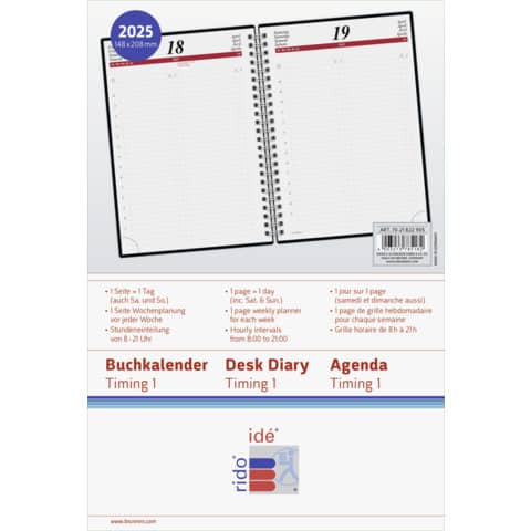 Eigenschaften "Spiralbuchkalender Timing 1 2025, 14,8 x 21 cm, PVC, schwarz RIDO 70-21 822 905"