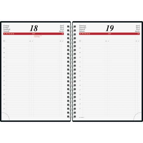 1 Tag auf 1 Seite, 464 Seiten mit Spiralbindung.Einband Schaumfolie schwarz.Modell Timing 1