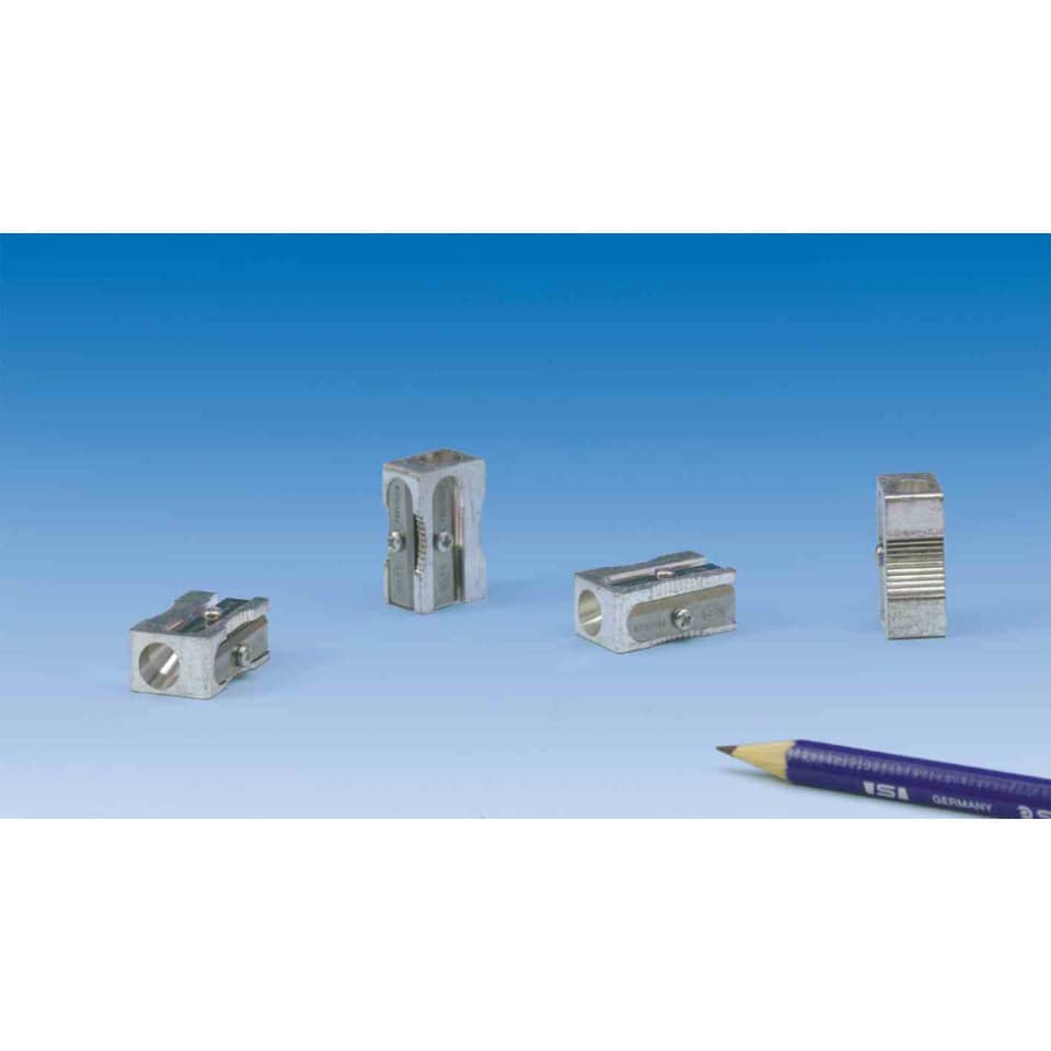 Einfach-Spitzer silber. Aus Leichtmetall in Blockform gefertigt, für Stifte 8 mm. Inkl. 2 Ersatzmesser (auswechselbar). (KUM 4001)