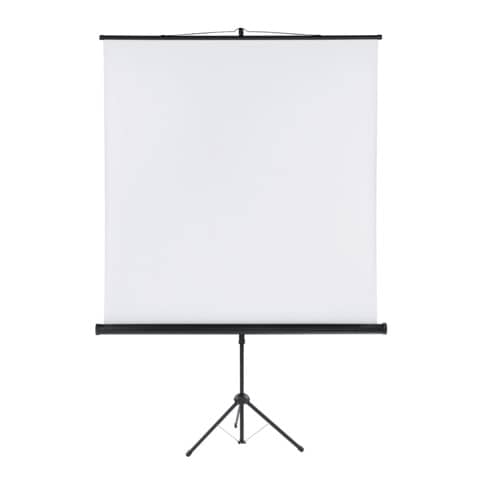 FRANKEN Stativleinwand X-tra!Line. Bildformat 1:1. Mit aufrollbarer Projektionsfläche. Schwarzes Dreibeinstativ mit stufenloser Höhenverstellung. Leinwand für LCD- und DLP-Projektion. Mattweiße Oberfläche aus beschichtetem Gewebetuch. Qualität der Bildwand: diffuses Licht (Typ D). Leuchtdichtefaktor: 1,0 Gain. Für den Transport verfügen die Leinwände über eine Tuchsicherung und einen Tragegriff. Material: Stahlblechgehäuse 1640 x 160 x 95 mm. Gewicht: 6 kg. Bildmaß: 1500 x 1500 mm. Außenmaß: 1500 x 1500 mm. Maximale Höhe: 2650 mm.