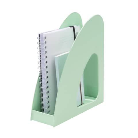 Stehsammler HAN Re-LOOP für Formate bis DIN A4/C4. Nachhaltiger Stehsammler aus qualitativ hochwertigem, recyceltem Kunststoff, im formschönen Design. Ergonomische Form für angenehmes Arbeiten in Büro, Schule und Freizeit. Hohe Stabilität garantiert. Der niedrige Rand erleichtert einen schnellen Zugriff. Der Stehsammler HAN Re-LOOP ist umweltfreundlich und hilft somit wertvolle Ressourcen zu sparen. Zur Aufbewahrung von Unterlagen bis DIN A4/C4 geeignet. Zubehör optional: einzigartiger Beschriftungsclip TWIN (Art.-Nr. 1690) als perfekte Ergänzung zur professionellen Beschriftung Ihrer Stehsammler. Fassungsvermögen: 70 mm. Made in Germany. Außenmaße (B x T x H): 76 x 239 x 256 mm. Material: 100% PIR-Kunststoff Rezyklat (PP). Farbe: pastellgrün.
