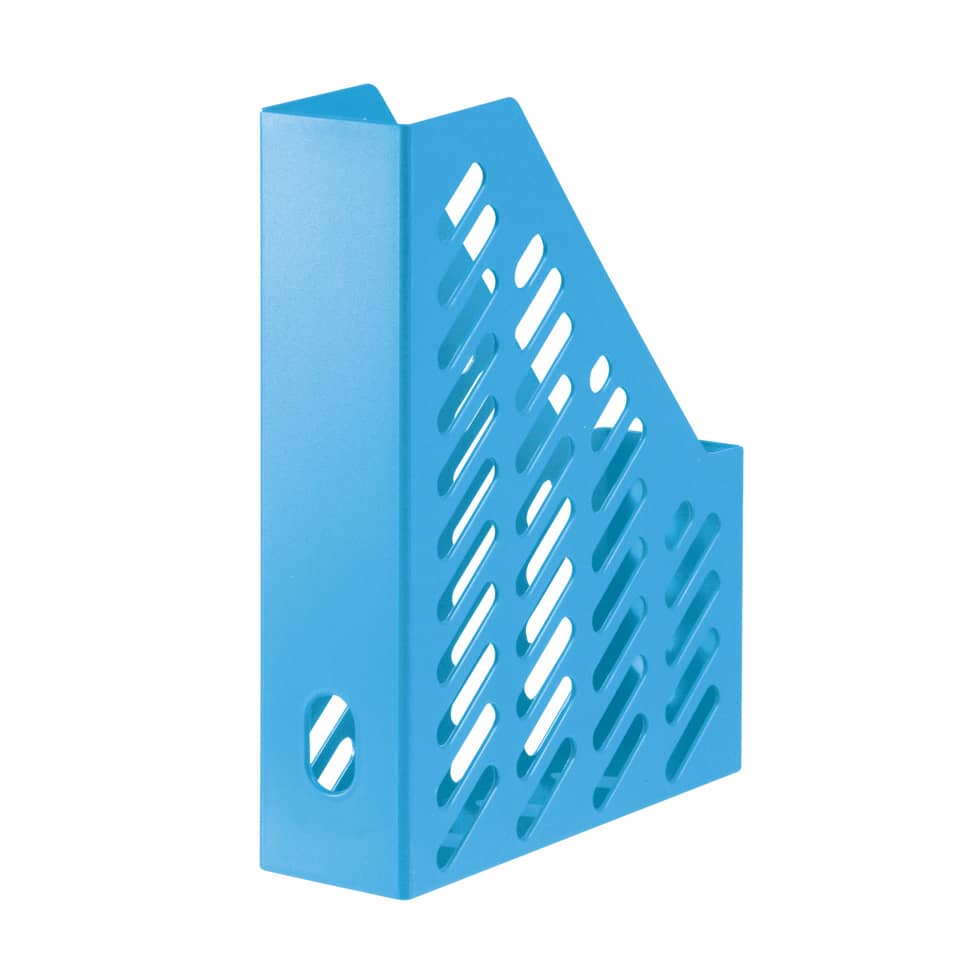 Stehsammler KLASSIK für Formate bis DIN A4/C4. Klassisches, zeitgemäßes Design. Nichts kippt mehr, nichts liegt herum, alles ist schön sortiert. Extra hohe Vorderseite um Dokumente sicher zu halten. Mit seitlichem Raster, das Einsicht auf Kataloge, Prospekte, Zeitschriften, etc. erlaubt. Mit praktischem Griffloch im Rückenteil für eine schnelle Entnahme. Platz für ein Rückenschild, das im 8er Set unter der Art.-Nr. 94100 nachbestellt werden kann. Zur Aufbewahrung von Unterlagen bis DIN A4/C4 geeignet. Fassungsvermögen: 70 mm. Voll im Trend und perfekt aufeinander abgestimmt, bringen die Trend Colours auch in Kombination untereinander gute Laune. Made in Germany. Außenmaße (B x T x H): 76 x 246 x 315 mm. Höhe vorne: 148 mm. Material: hochwertiger Kunststoff, Polystyrol (PS). Farbe: Trend Colour hellblau.