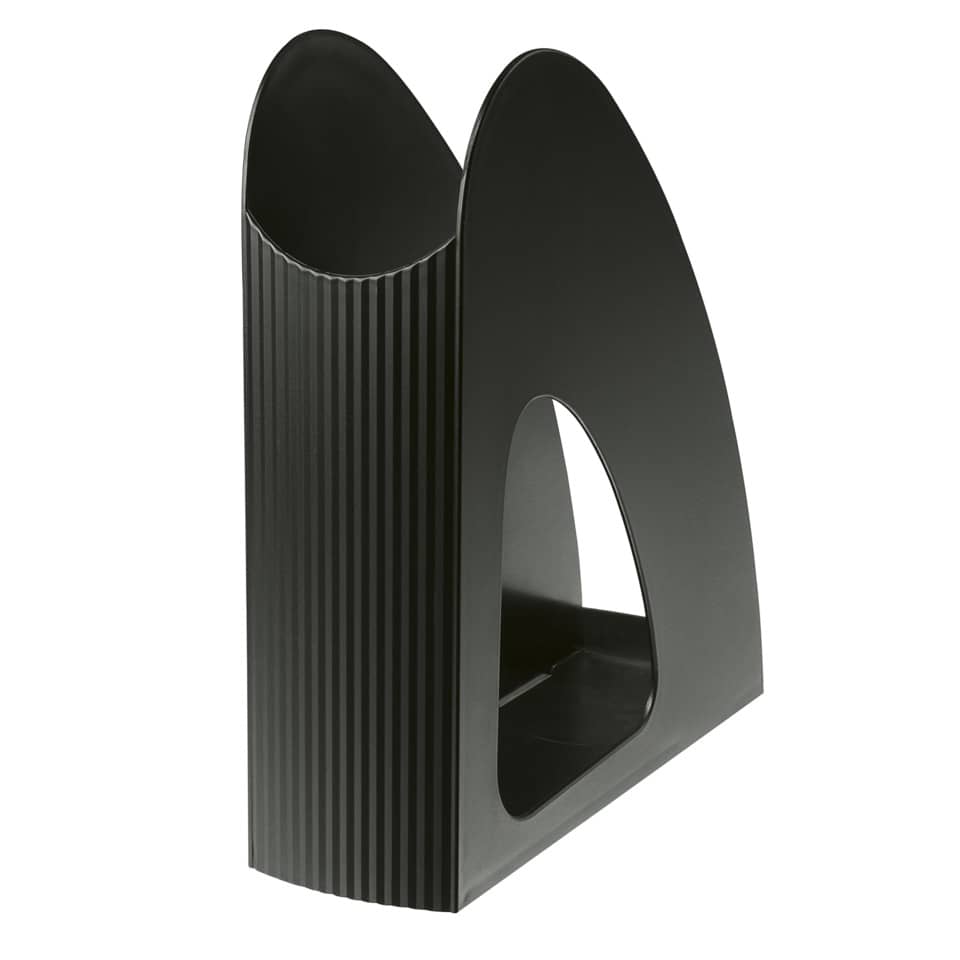 Stehsammler TWIN. Ideal zur Bestückung und Entnahme durch den niedrigen Rand. Verwendung für Papierformate bis C4. Material: hochwertiger, schwermetallfreier Kunststoff. Größe (B x H x T) : 76 x 26 x 239 mm. Höhe hinten: 257 mm. Farbe: schwarz