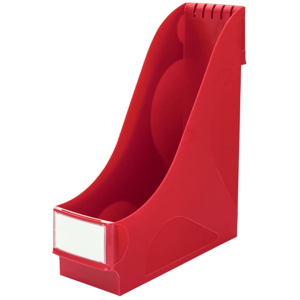 Leitz Stehsammler, extrabreit, A4, sehr stabil und standsicher, Beschriftungsmöglichkeit an Vorder- und Rückseite, inklusive Beschriftungsschild mit Abdeckung, grosse Griffmulde an Vorder- und Rückseite, mit Schlitzen zum Einstecken von Trennwänden. Material: Polystyrol. Füllvermögen: 92 mm. Format: 98 x 318 x 250 mm. Farbe: rot.