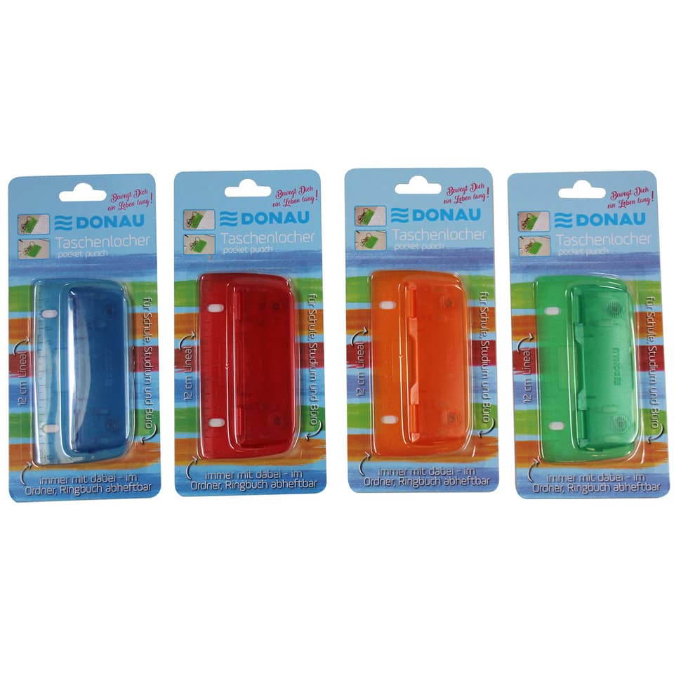 Eigenschaften "Taschenlocher, 2-Loch, 12 cm Skala, Kunststoff, sortiert DONAU 4420100-99"