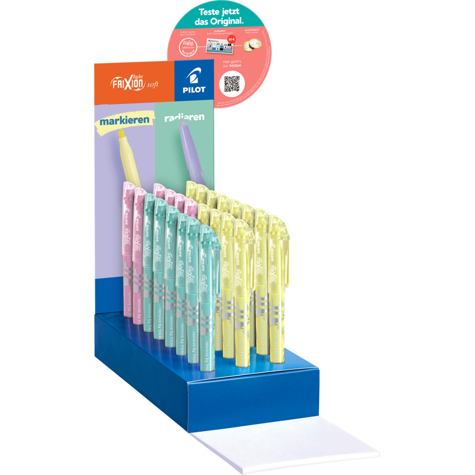| Ausführung des Inhaltes (Anzeige): | Textmarker Frixion Light Soft, 8 Stück 065 softgelb, je 4 Stück 063 softblau, 064 softgrün, je 3 Stück 068 softviolett, 069 softpink, 2 Stück 066 softorange |