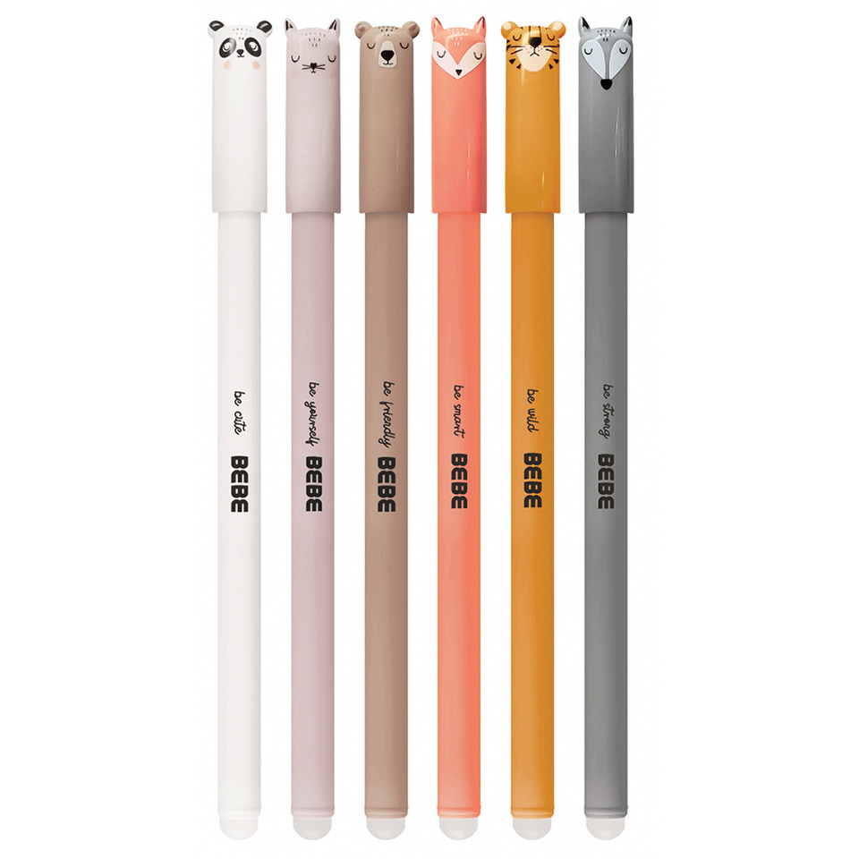 Die radierbaren Tintenroller "BEBE Friends" zeichnen sich durch ihre radierbare Tinte aus, mit der Fehler einfach korrigiert werden können. Die Tintenroller besitzen eine feine 0,5-mm-Spitze, die präzises Schreiben ermöglicht. Jedes Exemplar ist mit einer praktischen Kappe versehen, die die Tinte vor dem Austrocknen schützt. Die Tintenroller sind in sechs verschiedenen Tiermotiven aus der "BEBE Friends"-Serie erhältlich, was sie zu einem ansprechenden Schreibwerkzeug macht. Das Set enthält insgesamt 24 Tintenroller im Display.