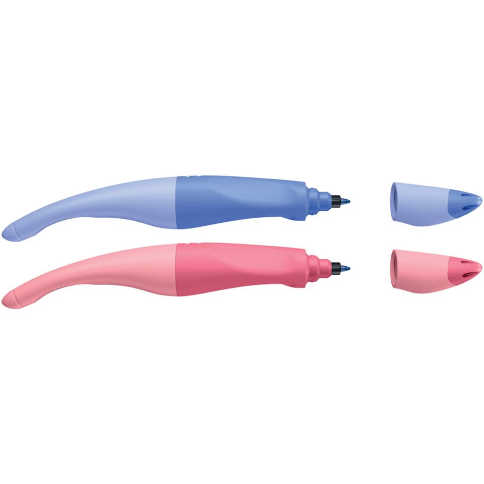 Ergonomischer Tintenroller STABILO® EASYoriginal Pastel, Kappenmodell, Typbezeichnung der Mine: STABILO EASYoriginal Patrone, Art der Schreibflüssigkeit: Tinte auf Wasserbasis, Ausführung Mine: Rollerballspitze aus Kunststoff mit Hartmetall. Eine neue Schreibspitze gibt es mit jeder neuen Patrone: garantiert einfaches Nachfüllen, 0,5 mm, königsblau, Mine auswechselbar, kann einige Tage offen liegen bleiben, ohne einzutrocknen, Tintenspeicher-Technik: Tamponsystem, Ausführung Stift: Schaft aus Kunststoff, Griffzone aus rutschfestem Material, in ergonomischem Design (Linkshänder). Entspannte Handhabung gegen frühzeitiges Ermüden der Muskulatur und Schmerzen beim Schreiben. Weiches Schreiben ohne Klecksen und Kratzen. Tinte fließt nur wenn der Stift bewegt wird, daher keine "Tinten-Seen", Farbe des Schaftes: rosiges Rouge, Ausführung des Inhalts mit Packung: Einzelstift inkl. 1 Patrone (medium, blau, löschbar).