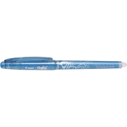 Feinschreibender, radierbarer Tintenroller FriXion Point mit Kappe und Clip. Ausgestattet mit der patentierten, thermosensitiven FriXion-Tinte. Mittels der Kunststoffspitze am Gehäuseende und der erzeugten Reibungswärme (ab ca. 60° C) kann das Geschriebene weggerieben werden. Kälte bewirkt den Umkehreffekt. Eine kurze Zeit im Gefrierfach (ab ca. -10° C) lässt die Schrift wieder erscheinen. Mit innovativer Synergy-Spitze: Eine Kombination aus Needle-Point und konischer Schreibspitze für weicheres Schreiben und einen gleichmäßigeren Tintenfluss als bei herkömmlichen Minenspitzen. Mit der passenden Mine BLS-FRP5-S3 (2265F) nachfüllbar. Kugeldurchmesser: 0,5 mm (F). Strichbreite: ca. 0,3 mm. Gehäusefarbe = Schreibfarbe. Schreibfarbe: Hellblau. Nicht dokumentenecht.
