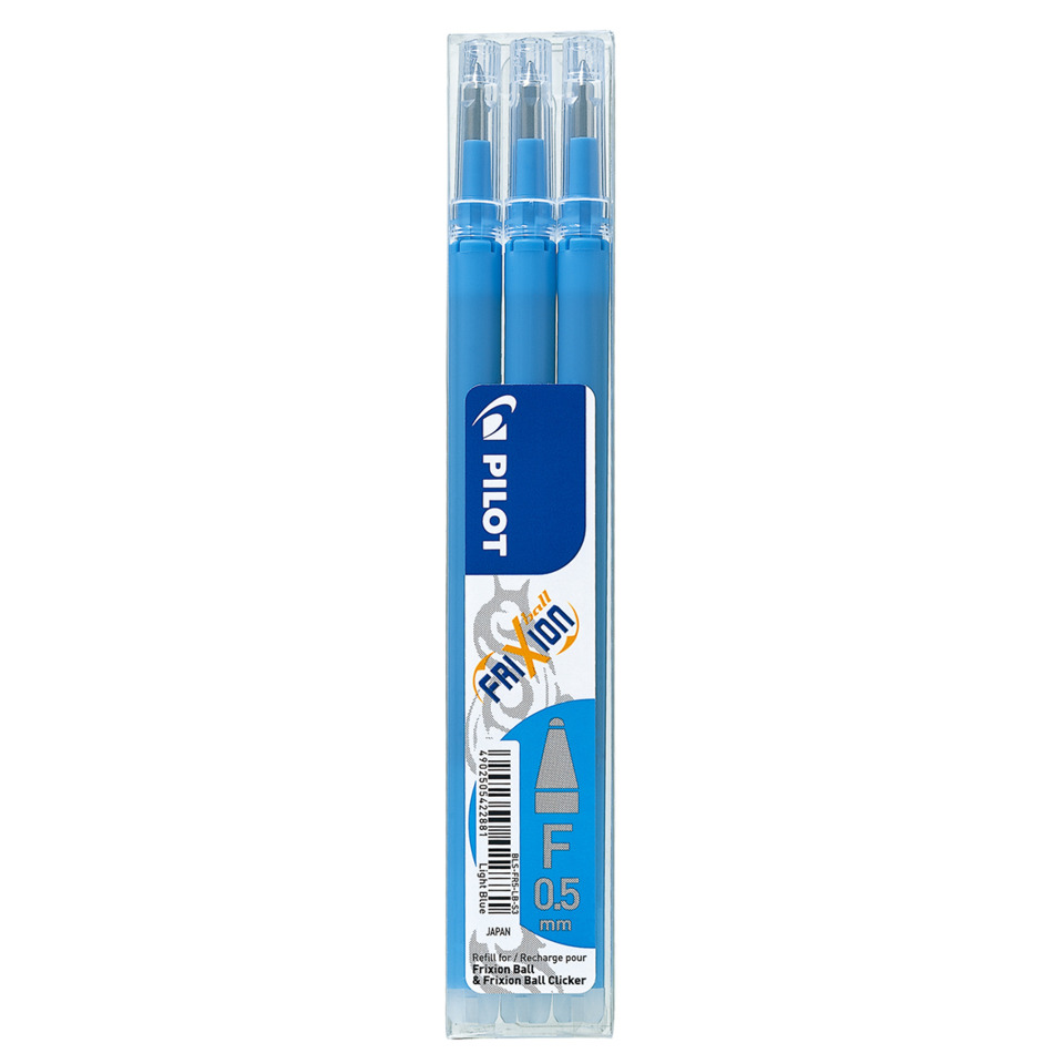 Produktinformationen "Tintenrollermine FriXion Ball/Clicker, 0,3mm, 3 Stück, hellblau PILOT BLS-FR5-S3-LB"