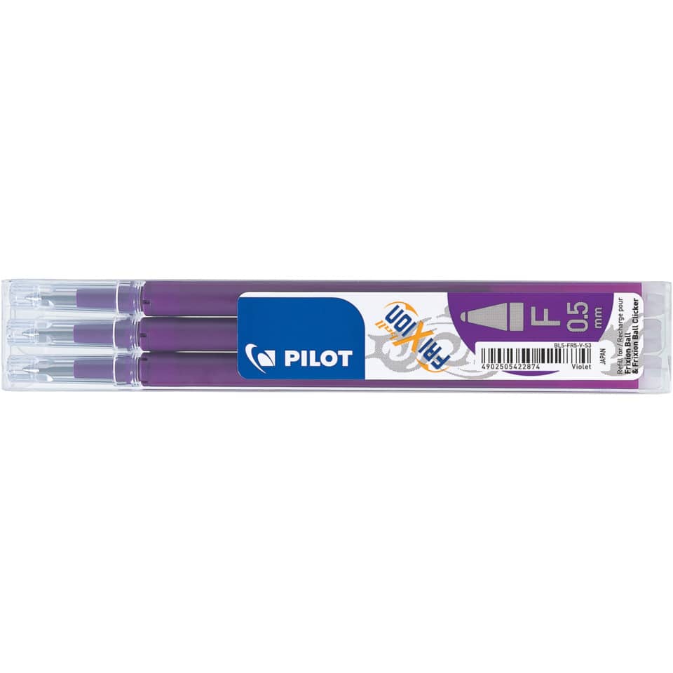 Produktinformationen "Tintenrollermine FriXion Ball/Clicker, 0,3mm, 3 Stück, violett PILOT BLS-FR5-S3-V"