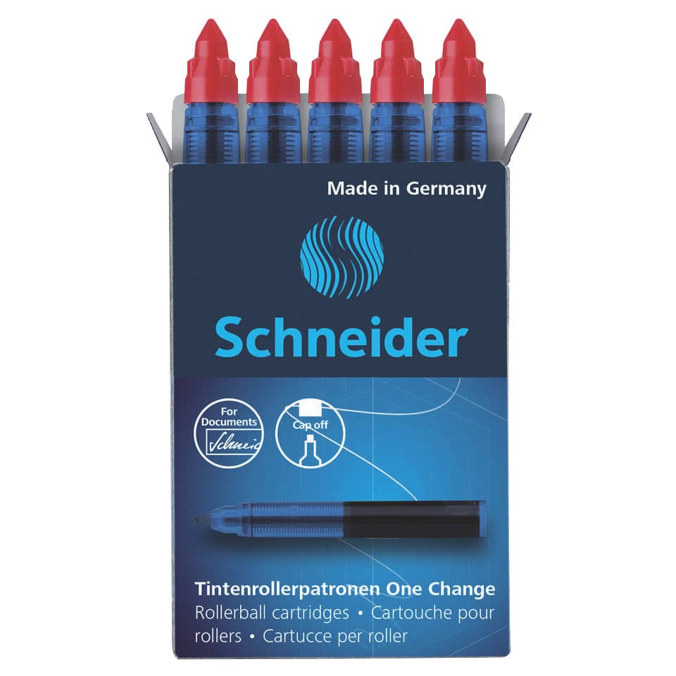 Eigenschaften "Tintenrollerpatrone One Change, 0,6 mm, rot, 5er Schachtel SCHNEIDER 50-185402"