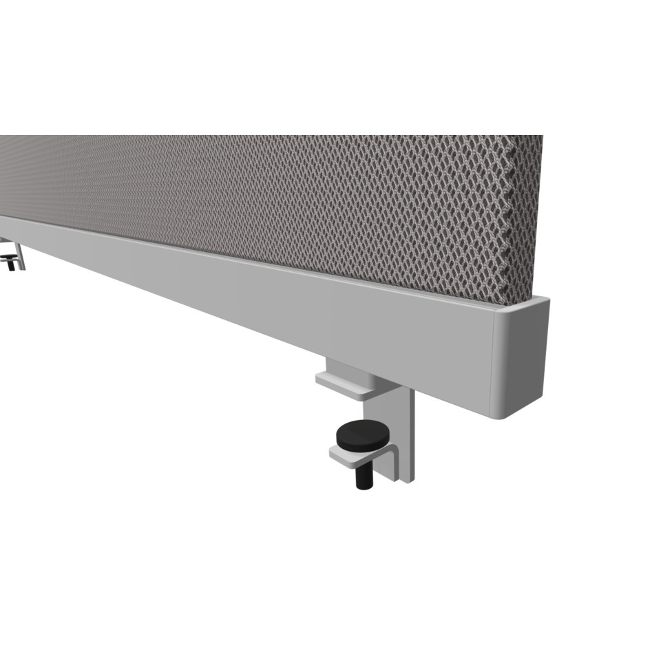 OKA DeskTOP Ausführung - Basic Höhe 48cm Sichtschutzelement. Screen besteht aus einer Kombination unterschiedlicher Holzwerkstoffe (Basic) in Verbindung mit einem Holz-Aluminiumrahmen. Pinnfähige Stoffbespannung. Zur Erweiterung stehen verschiedenste Add-Ons zur Verfügung, die aus dem Tisch einen individuellen Arbeitsplatz erzeugen. Tischscreen, Befestigung mit Tischklemme B: 140cm H: 48cm. Ausführung Basic Rahmen: Alusilber, Farbe RY60165. GS und TÜV Zertifizierung.