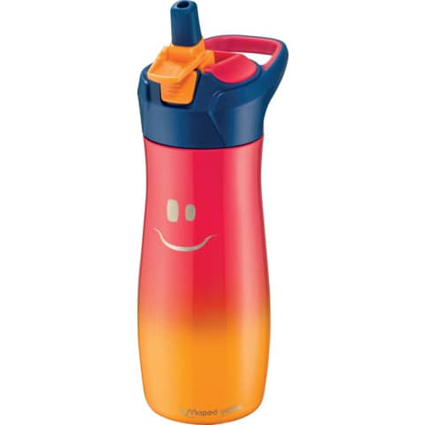 Edelstahl-Trinkflasche mit Trinkhalm für kalte Getränke. Farbverlauf-Bedruckung mit Smiley-Motiv. Auf Knopfdruck kommt der Trinkhalm automatisch raus. Zum schließen den Trinkhalm einfach eindrücken. 100% auslaufsicher - mit praktischem Tragegriff. Lebensmittelecht & BPA-frei. Leicht zu reinigen: der Trinkhalm lässt sich herausnehmen, besonders großer Flaschenhals. Spülmaschinengeeignet (Oberkorb). Fassungsvermögen: 580 ml.