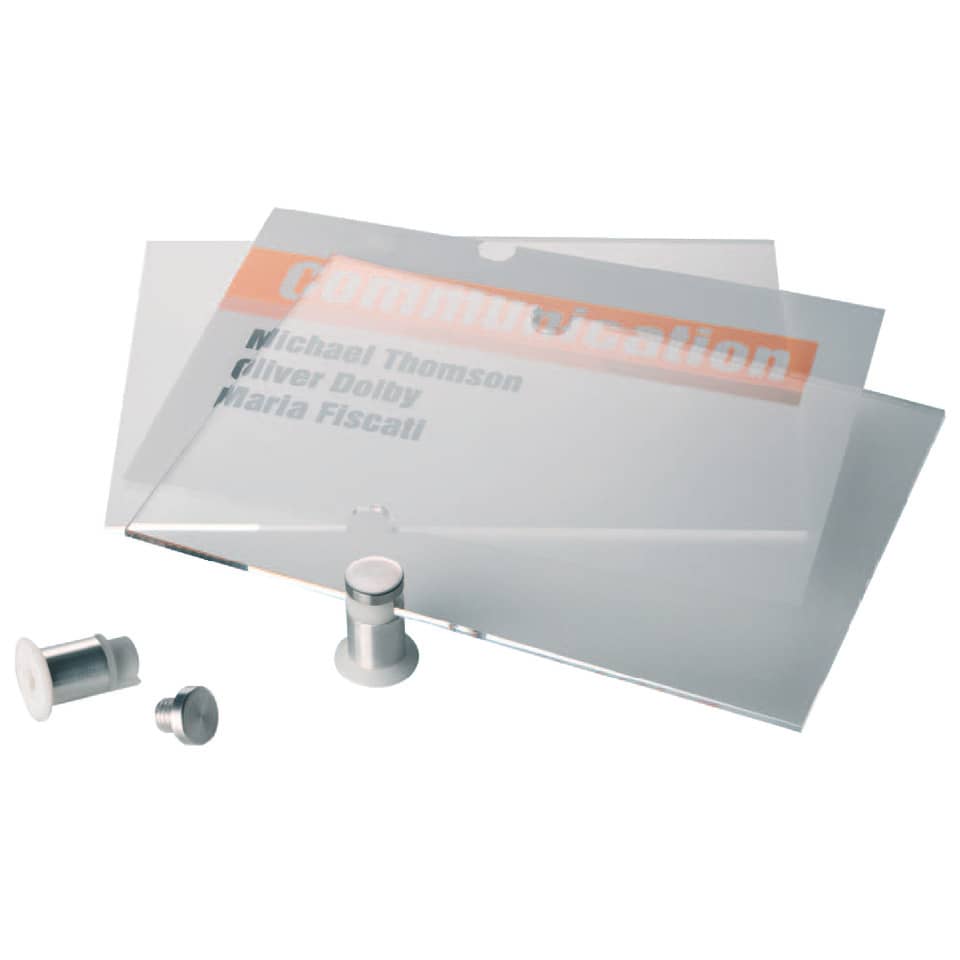 Türschild CRYSTAL SIGN. Werkstoff: hochwertiges Acrylglas. Mit kristallklaren an den Kanten polierten Acrylplatten und semi-transluzenter Folie, Folienschilder lassen sich durch eine Perforation einfach aus dem A4 Format trennen, sind Farb- sowie s/w-Laserdrucker geeignet. Die Folie wird zwischen die beiden stabilen Acrylplatten gelegt und durch zwei hochwertige Schraubverbindungen an der Wand fixiert. Beschriftungsschild auswechselbar. Befestigungstechnik: mit beiliegendem Montageset. Größe (B x H): 210 x 297 mm. Farbe: transparent.