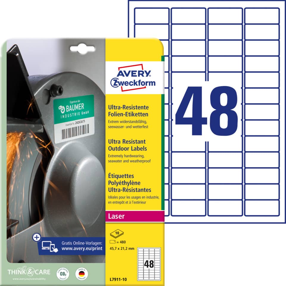 Eigenschaften "Ultra-Resistente Folien-Etiketten, 45,7x21,2mm, 480 Stück, weiß AVERY ZWECKFORM L7911-10"