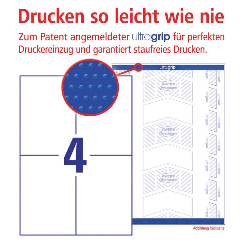 Eigenschaften "Universaletiketten, 105x148mm, 400 Stück, weiß AVERY ZWECKFORM 3483"