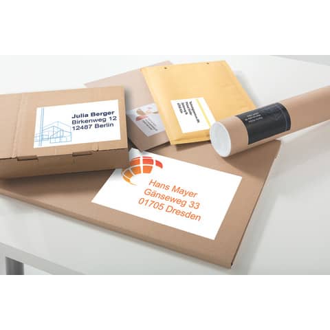 Universal-Etiketten. Anwendung: Markieren, Kennzeichnen, Organisieren, Ordnen. Format: 210 x 297 mm. Klebstoff: permanent. Drucker: Inkjet, Laser s/w, Farblaser. Form: rechteckig. Farbe: weiß. Material: Papier. Nachhaltigkeit: chlorfrei gebleicht, FSC®. Größe: A4. Blatt / Packung: 220. Pro Bogen: 1 Etikett. Inhalt gesamt: 220 Etiketten