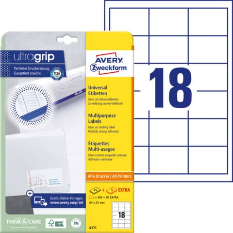 Eigenschaften "Universaletiketten, 64x45mm, 540 Stück, weiß AVERY ZWECKFORM 6171"