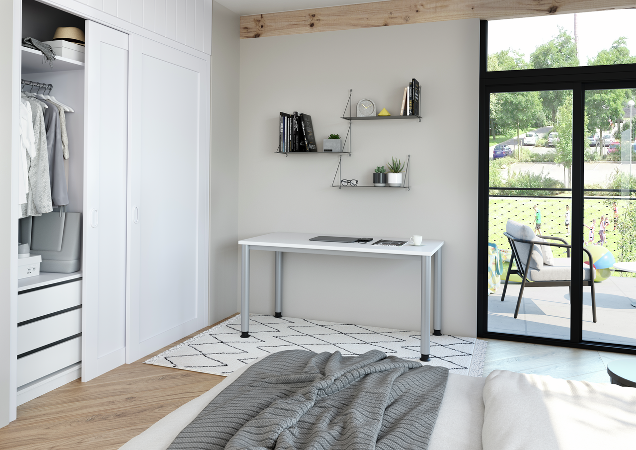 Eigenschaften "Vierfußschreibtisch schmal 1,40m, Rundrohr"