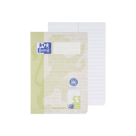Eigenschaften "Vokabelheft Recycling, A5, 32 Blatt, Lin.53, liniert, hellgrün OXFORD 400159441"