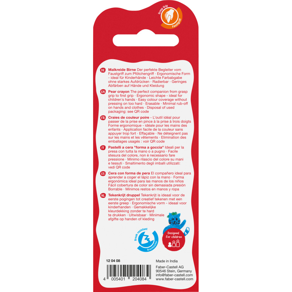 Eigenschaften "Wachsmalkreide Birne, 4 Stück, sortiert FABER CASTELL 120408"