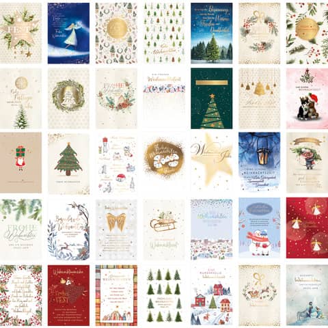 Nur Inhalt, OHNE DREHSTÄNDER, Green Christmas, Drehständer K-1062, 64 Motive á 6 Karten, strukturierter weißer Karton, Druckkarten, mit Prägung, der Natur zuliebe unverpackt, FSC-zertifizierter Naturkarton