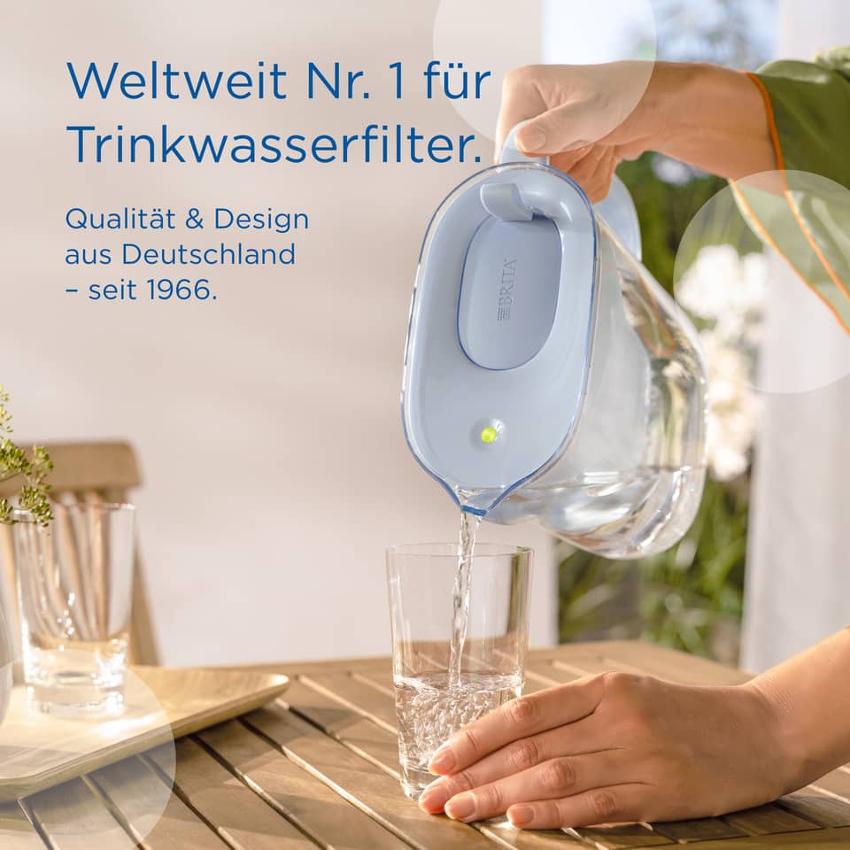- Nachhaltigkeit ist für BRITA kein Trend: Seit 1992 recycelt BRITA bereits Wasserfilterkartuschen über die eigene Recyclinganlage. Schicke deine Kartuschen an BRITA zurück, damit alle Kartuschen-Bestandteile wiederverwendet oder recycelt werden können. Gesamtkapazität von 2,4l für 1,4l frisches gefiltertes Wasser. Mach mit – denn jede Plastikflasche zählt. Mit jedem BRITA-Produkt trägst du aktiv dazu bei, die Menge an Plastikflaschen zu reduzieren, die im Müll landen. 1 Liter BRITA gefiltertes Wasser verursacht 25 Mal weniger CO2 als Flaschenwasser aus Einwegplastik. Schütze unsere Umwelt – mit BRITA! BRITA bietet nachhaltige Trinkwasserlösungen und ist weltweit die Nr. 1 für Trinkwasserfilter. Qualität & Design aus Deutschland – seit 1966.