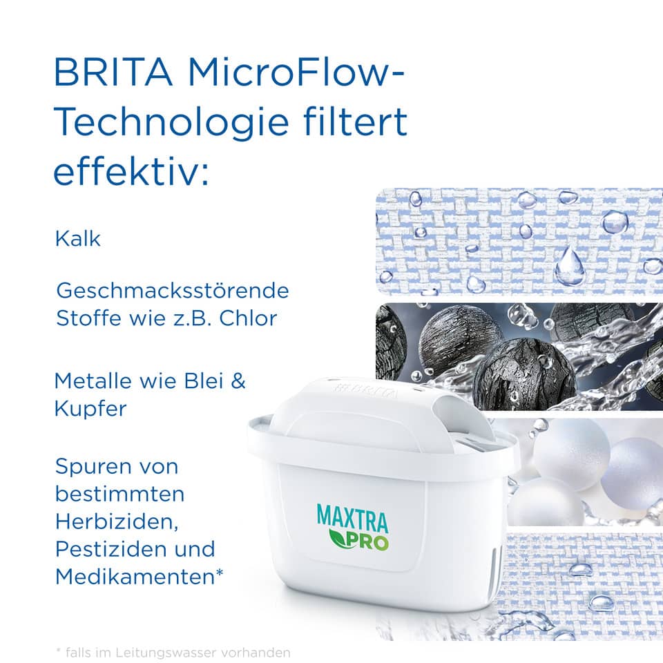 - Passend für alle BRITA Wasserfilter-Kannen & BRITA Flow: dank des bewährten BRITA PerfectFit-Systems deine Garantie für eine zuverlässige & vollständige Filtration. Vertraue dem Original: reines, frisch und lecker schmeckendes BRITA-gefiltertes Leitungswasser – schützt zudem Küchengeräte zuverlässig vor Verkalkung. Verbesserte Filtrationsleistung: Das innovative Hochleistungs-Filtergewebe reduziert Mikropartikel (Kleiner-Gleich 30 μm) 4x besser als die bisherige BRITA MAXTRA+ Filterkartusche – ideal für ältere Rohrleitungen. Doppelt smart! Mit der MAXTRA PRO bietet BRITA zwei Wasserfiltrationsexperten: den Alleskönner ALL-IN-1 & den Kalkexperten EXTRA KALKSCHUTZ für zusätzlichen Geräteschutz mit +50% effektiverer Kalkreduktion als die ALL-IN-1 Kartusche, besonders konzipiert für hartes bis sehr hartes Wasser. Mach mit – denn jede Plastikflasche zählt. Mit jedem BRITA-Produkt trägst du aktiv dazu bei, die Menge an Plastikflaschen zu reduzieren, die im Müll landen. 1 Liter BRITA gefiltertes Wasser verursacht 25 Mal weniger CO2 als Flaschenwasser aus Einwegplastik. Schütze unsere Umwelt – mit BRITA! BRITA bietet nachhaltige Trinkwasserlösungen und ist weltweit die Nr. 1 für Trinkwasserfilter. Qualität & Design aus Deutschland – seit 1966.