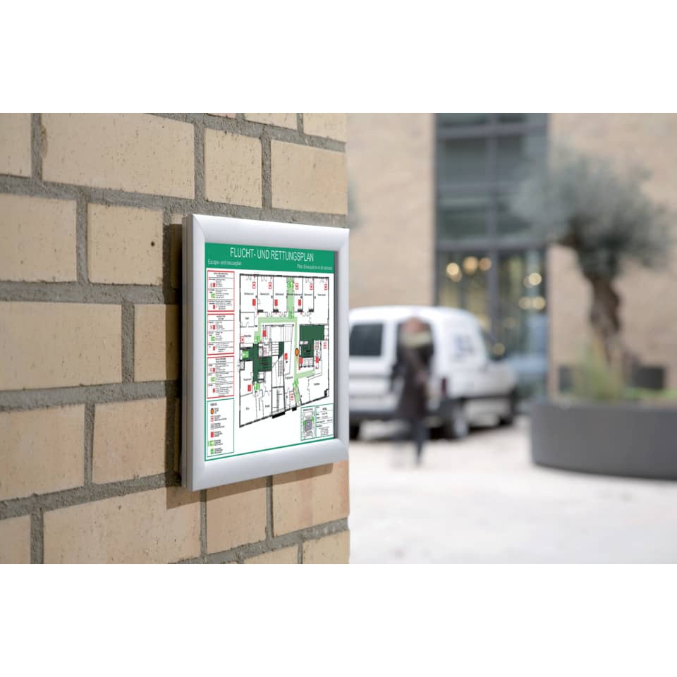 Eigenschaften "Wechselrahmen Security Feuerfest, DIN A4, Schutzfolie UV-Filter, silber FRANKEN BS1801"