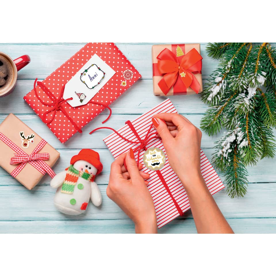 Weihnachtssticker. Anwendung: Dekorieren, Schenken, Gestalten, Persönliche Grüße. Klebstoff: permanent. Farbe: gold. Material: Folie. Nachhaltigkeit: Made in Germany. Größe: Kleinpackung. Blatt / Packung: 1. Pro Bogen: 38 Etiketten. Inhalt gesamt: 38 Etiketten