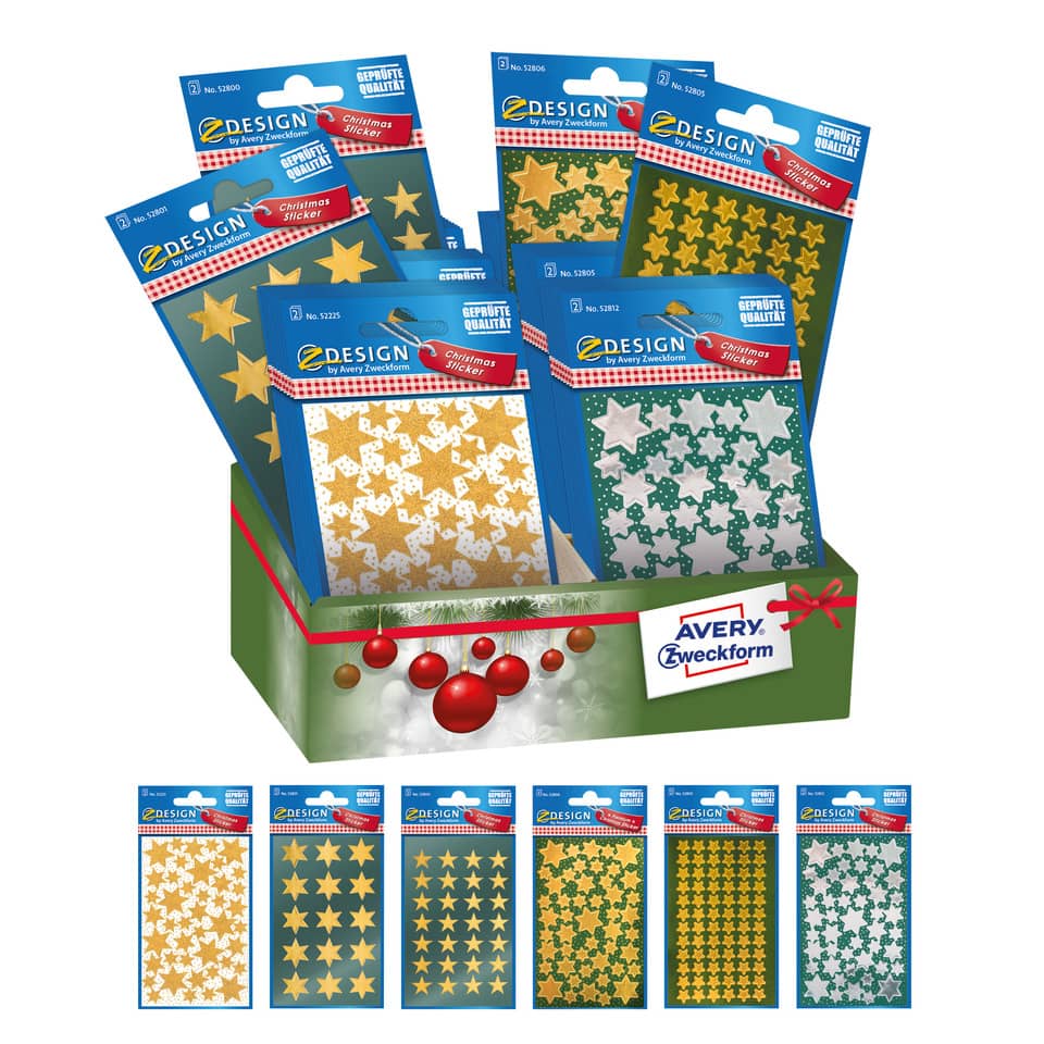 Eigenschaften "Weihnachtssticker Sterne, 60 Stück, sortiert AVERY ZWECKFORM 52937"