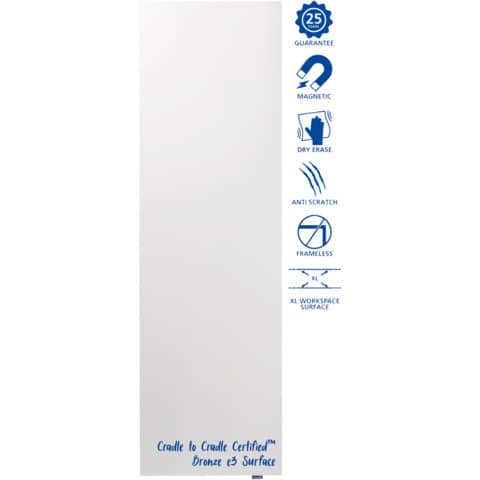 Hochwertiges rahmenloses und kratzfestes Whiteboard für langfristige und intensive Nutzung. Beschreibbar mit trocken abwischbaren Whiteboardmarkern. Magnetische Oberfläche aus emailliertem e3-Keramikstahl, Cradle to Cradle Certified™, Bronze-Level. Das rahmenlose Design ermöglicht die Kombination verschiedener WALL-UP-Tafeln. Für die senkrechte Montage. Lieferung mit Montageset, Montageanleitung und Hinweisen zur Reinigung.