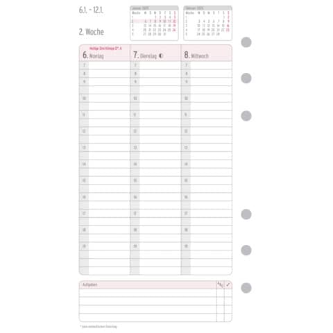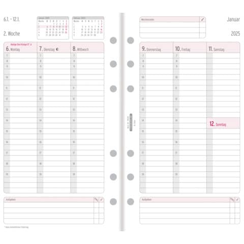 | Kalenderaufteilung: | 1 Woche / 2 Seiten |