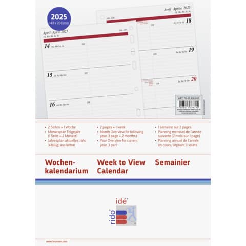 Eigenschaften "Wochenplan Timing 1 2025, A5 RIDO 70-65 910 005"
