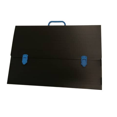 Zeichenkoffer. Mit Tragegriff und 2 Verschlüsse in Farbe blau. Material Polypropylen (PP) 2,5 mm stark und 480 g/m², widerstandsfähig und abwischbar. Für Format A3 passend. Größe BxHxT: 53 x 38 x 5 cm