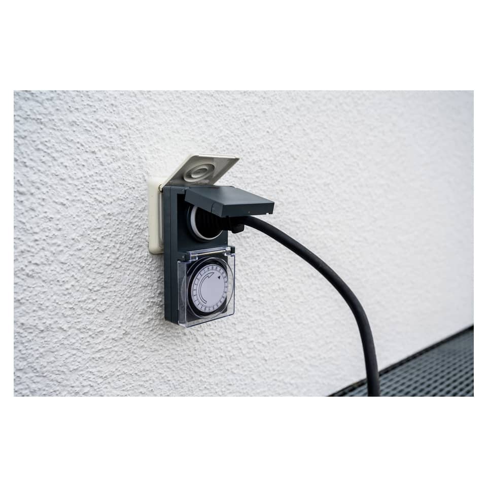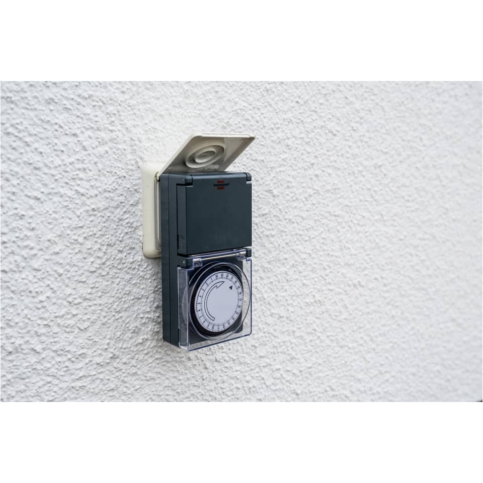 Die mechanische Zeitschaltuhr von Brennenstuhl mit IP44-Schutz für innen und außen in der Farbe grau besticht durch ihre Qualität und Sicherheit in allen Bereichen. Sie verfügt nicht nur über einen erhöhten Berührungsschutz, sondern besticht außerdem durch folgende Eigenschaften: